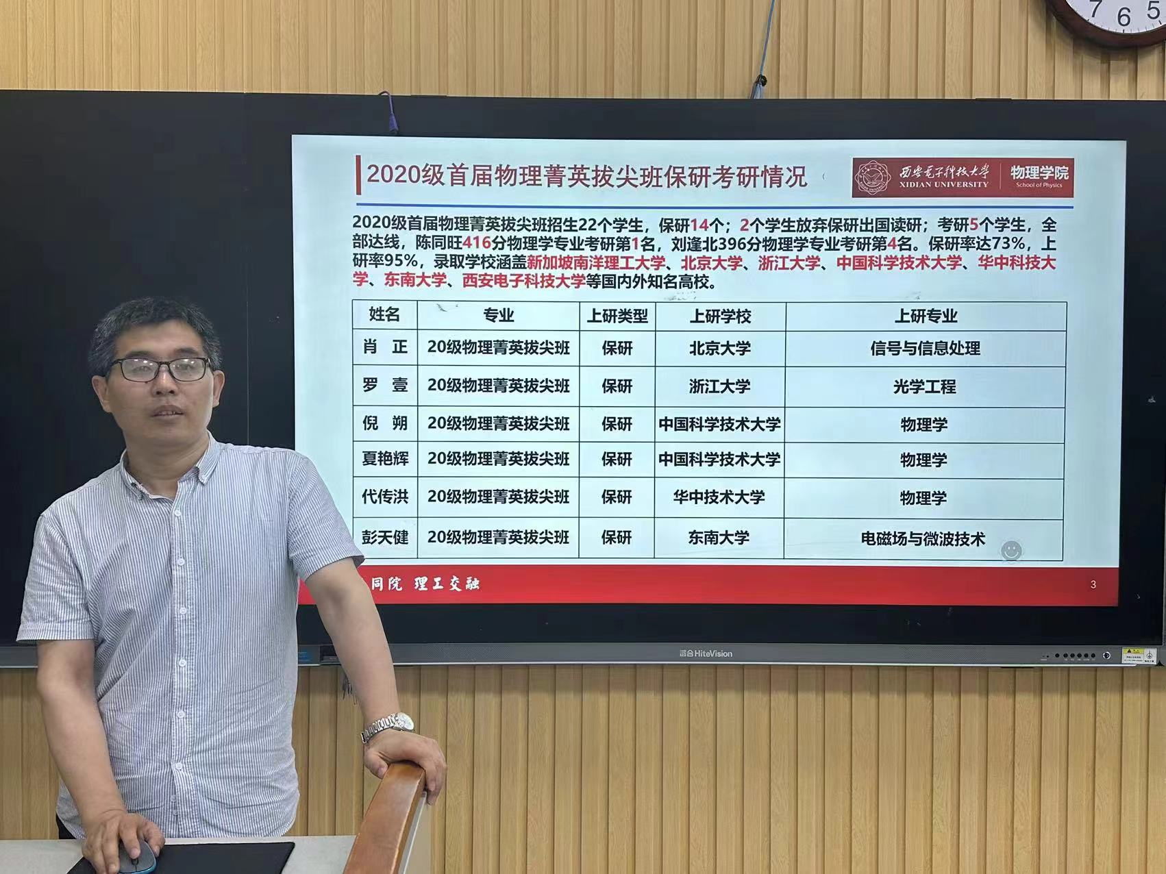 (通讯员 张钊)为进一步提升人才培养质量,帮助2021级物理菁英拔尖班的同学们了解保研信息、提升考研技巧,5月15号下午,PA捕鱼官方网站邀请首届物理菁英拔尖班保研、考研及出国留学的优秀学子进行经验分享,会议在南校区C楼115教室举行,物理系副主任兼物理菁英拔尖班负责人崔志伟以及2021级物理菁英班全体学生参加了本次交流会,会议由辅导员景玉主持。