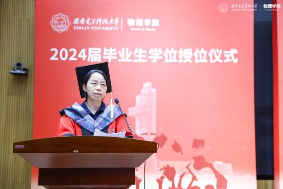 黄军荣书记宣读了2024届毕业生表彰决定及校友联络使者聘任决定,他叮嘱2024届毕业生们,要铭记母校光荣传统,传承西电校训,与母校保持密切联系。