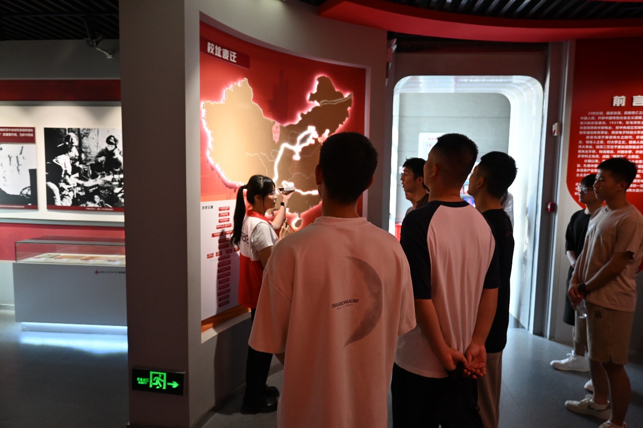 随后一行人前往西电博物馆参观,硕士2022级党支部书记曹远聪为大家介绍了博物馆各大展厅的历史和展品。西电校博物馆以电子科技发展史上有代表性的物品为载体,反映我党我军军事电子科技事业发展历程及PA捕鱼官方网站建校以来为之作出的贡献。曹远聪着重介绍了电子元器厅中电抗元件的实物、半导体光电器件和电探测器组件等反映西电物理学科历史的各类展品。