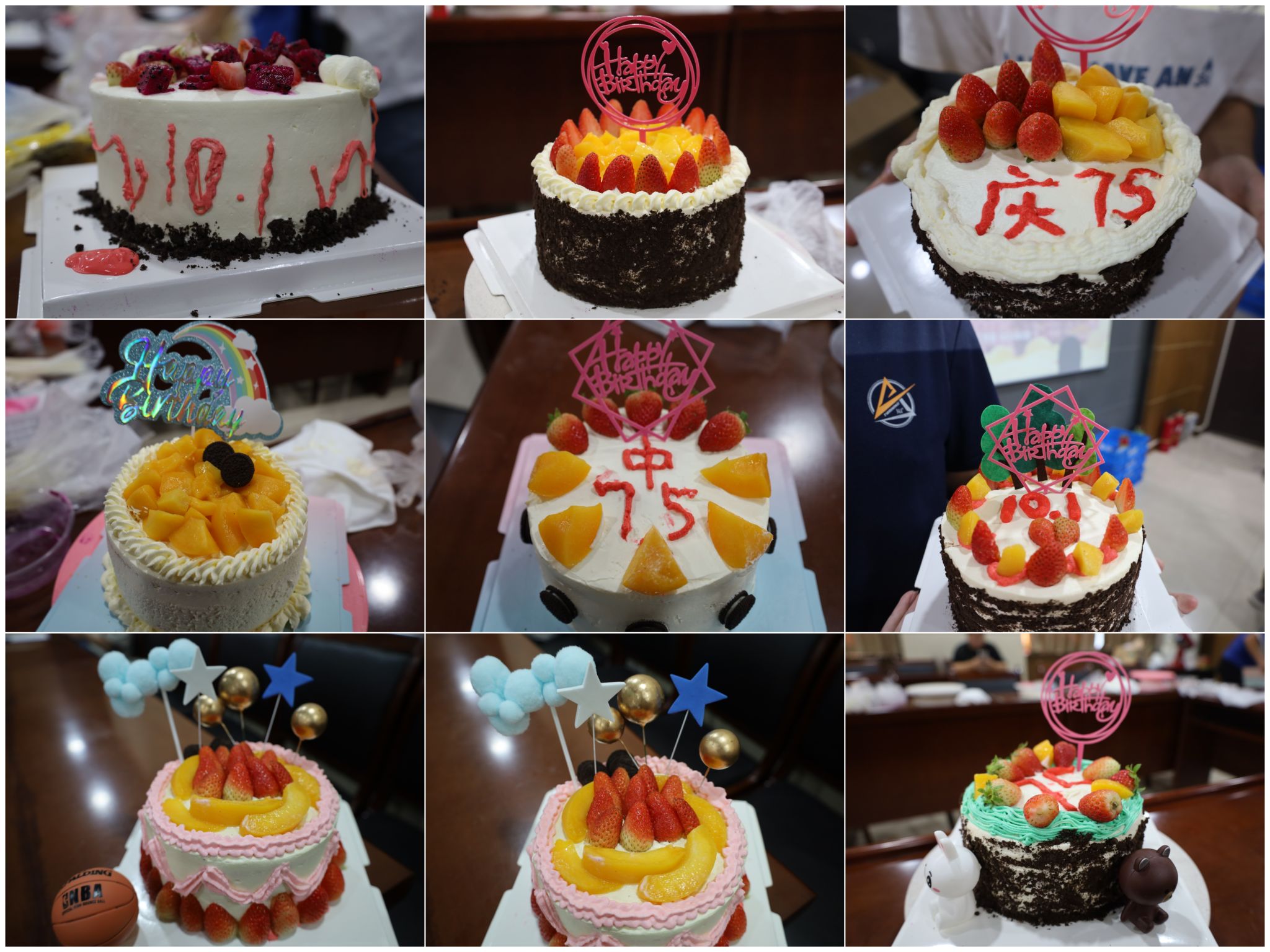 活动伊始,首先由蛋糕烘焙老师向同学们讲解蛋糕制作方法、技巧,材料选择及工具使用等基础知识,并展示蛋糕制作全过程。随后,同学们相互协作,用奶油、水果、卡片来装饰蛋糕。在烘焙老师指导下,一起动手参与涂抹奶油、做花边、点缀水果。“75生日快乐”、“我爱你祖国”……同学们纷纷把对祖国的热爱“写”在蛋糕上,展现个人创意与审美,用别样的甜蜜为祖国庆生。