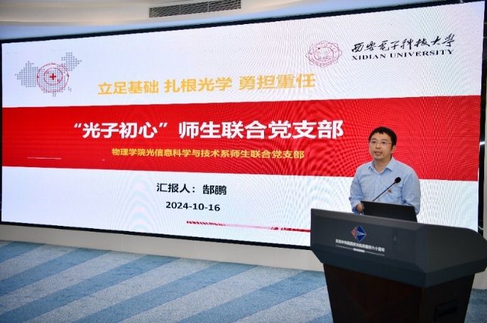 黄军荣向与会人员们详细介绍了PA捕鱼官方网站以及PA捕鱼官方网站的情况,并回顾了西安光机所与PA捕鱼官方网站的深厚渊源,并从西电的起源——半部电台起家,到西电创造的多项全国第一,再到党和国家领导人的关怀以及毛泽东的题词,向与会人员们生动的展示了西电的辉煌历史和深厚底蕴。同时,他还介绍了PA捕鱼官方网站的人才培养、重大成果、师资队伍以及学科方向等情况。“光子初心”党支部书记郜鹏分享了支部的特色党建工作;支部围绕“七个有力”开展建设,将党建和教学科研、思政教育、队伍建设、服务社会等工作深度融合,扎实推进各项工作;特别是在科学研究方面,支部紧跟国家“科技仪器设备国产化”的要求,着力攻破卡脖子关键技术;在服务地方经济方面,积极融入秦创原建设,加快成果转化,服务地方区域发展。