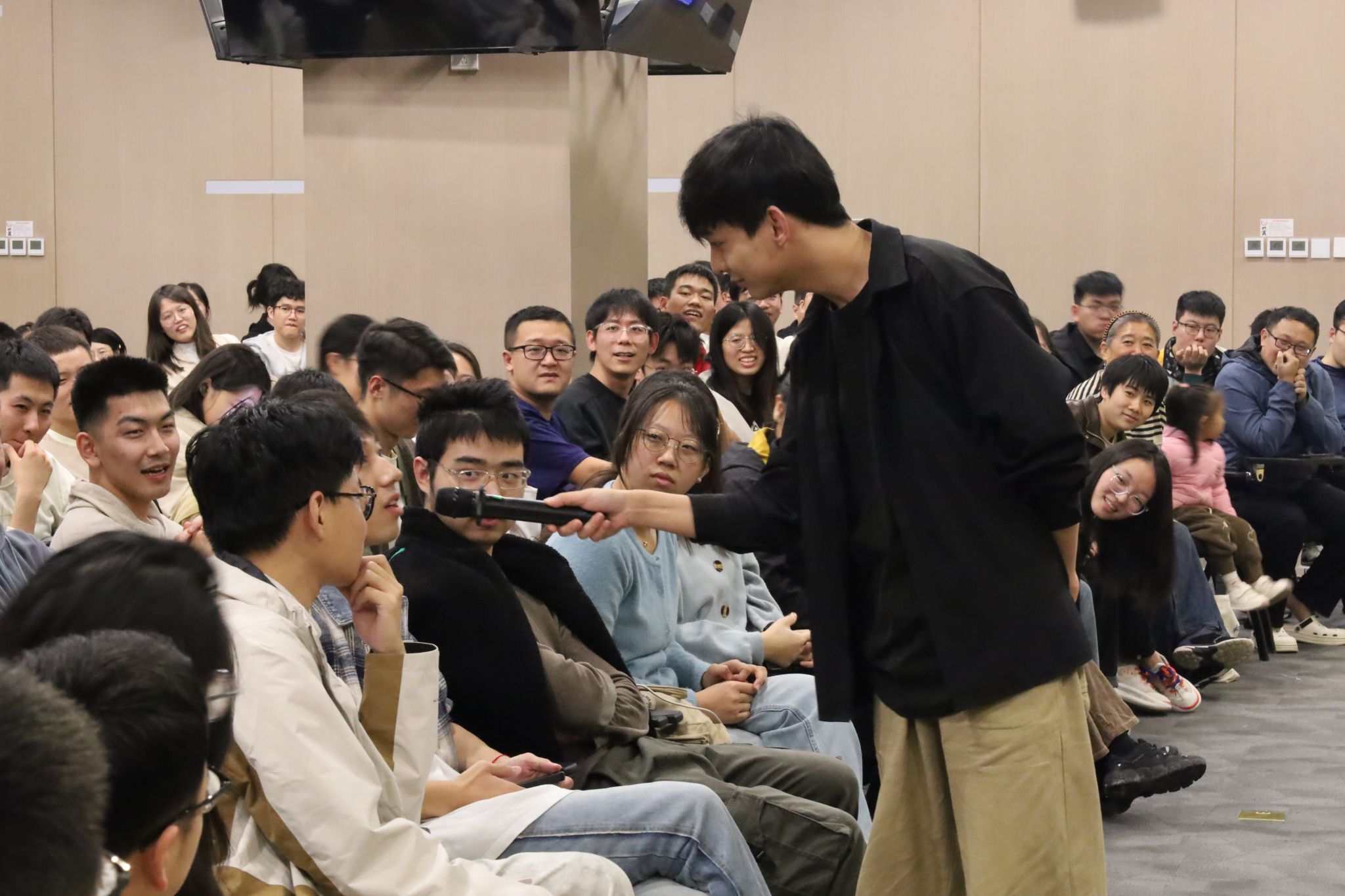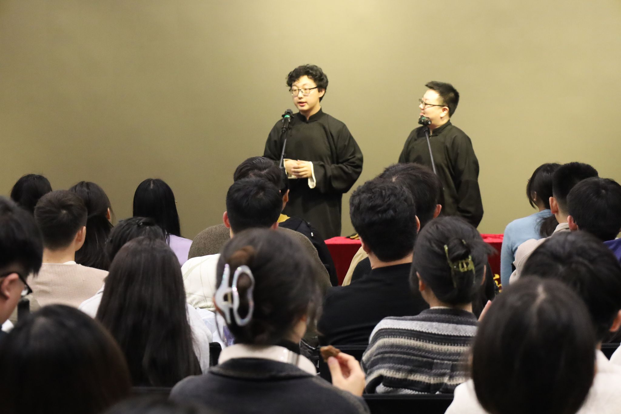 (通讯员 于天玮)把烦恼团成线团,用欢乐重新编织,如约而至的笑声驱散了不期而遇的秋思。10月26日,PA捕鱼官方网站于北校区会议中心104成功举办“物忧物虑”喜剧专场演出。学院特邀PA捕鱼官方网站介四相声社、西安交通大学博雅曲艺社、西安马上喜剧,为北校区师生带来了一个难忘的欢乐夜晚。演出现场起满座满、掌声笑声不断,共吸引250余名研究生师生前来观看。