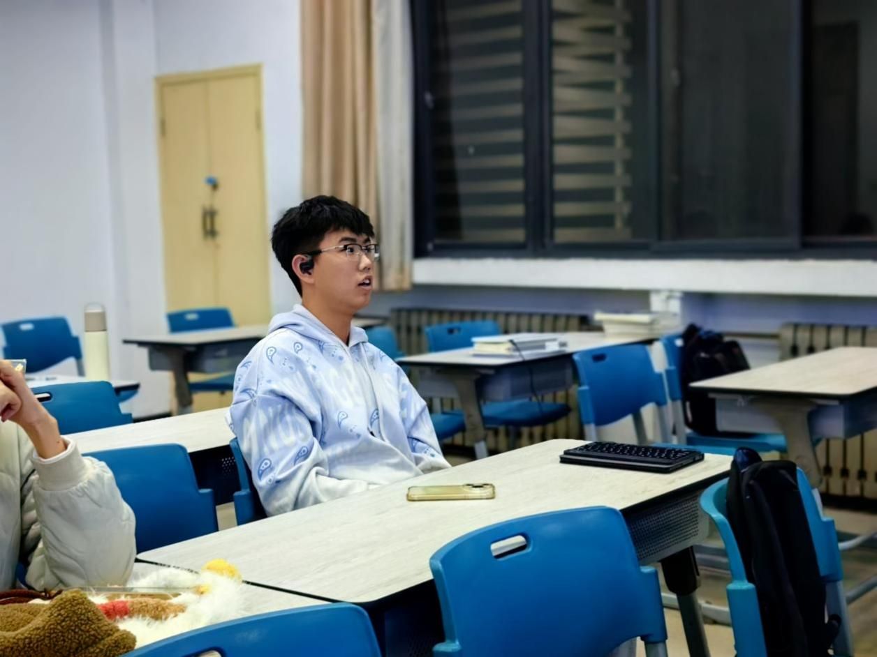 在互动交流环节,现场气氛热烈,同学们积极向孙一琪同学提问,就准备时长、队友选择等具体问题展开了深入探讨。孙一琪同学耐心解答,结合自身参赛经验与同学们进行了充分的交流与互动。