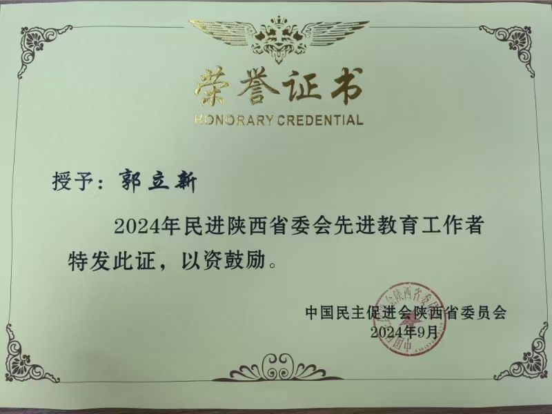 郭立新获2024年民进陕西省委“先进教育工作者”称号