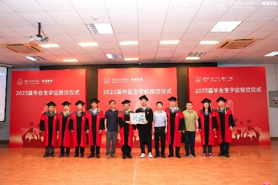 随后,相关领导和老师为2025届的博士、硕士、本科毕业生逐一拨穗、颁发学位,并与他们合影留念。毕业生代表们向母校赠送了“手绘西电明信片相框”,表达他们对母校和学院的感激之情。