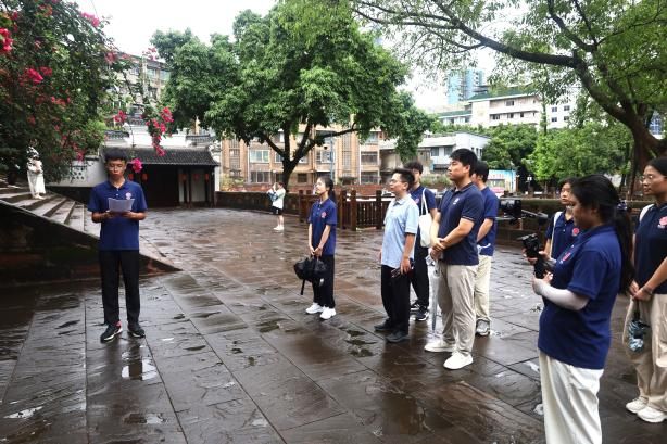 岷江江畔烟雨霏霏,李雨聰同学向实践队分享了王一平、胡昌璧教授革命伉俪的感人事迹,全体队员在江畔缅怀王一平、胡昌璧教授。他说到:“作为新时代大学生,我们站在这里,不仅要缅怀王一平、胡昌璧教授,更要接过他们递来的火把——在各自的专业领域继续深耕,在新时代浪潮中让祖国强大,让这份‘弦歌不辍、薪火相传’的精神,如岷江之水,永远奔涌向前”。黄军荣望着滔滔江水对同学们谆谆嘱托:“希望同学们坚持‘心定意诚修身’,坚定目标不断追逐探索,提升个人主观能动性和综合素质,向两位教授学习,勇担时代赋予的责任,心系国家民族,厚植家国情怀并为之不懈奋进。”