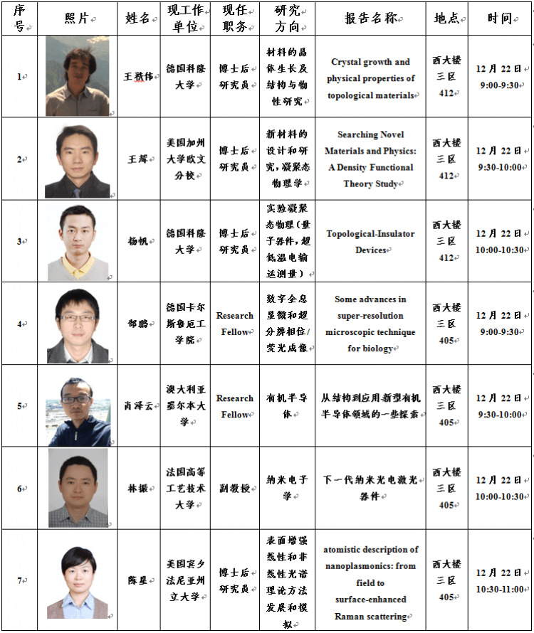 学校首届“华山青年学者国际论坛”物光院分论坛学术报告安排
