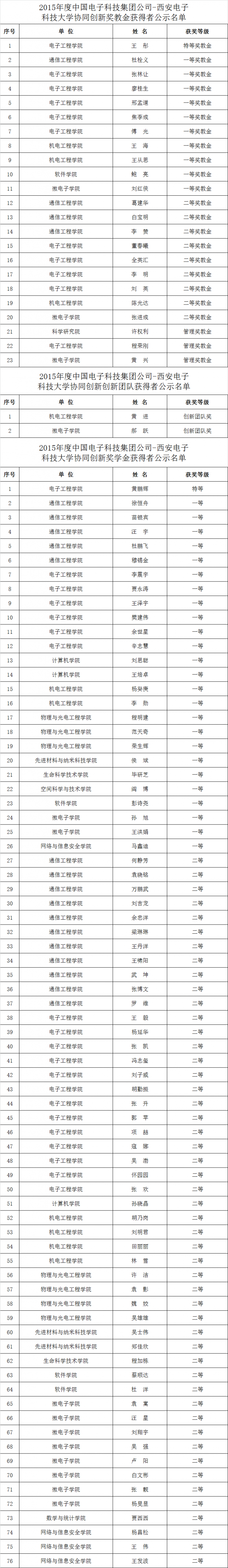 2015年度中国电子科技集团公司-PA捕鱼官方网站协同创新奖教金获得者公示名单