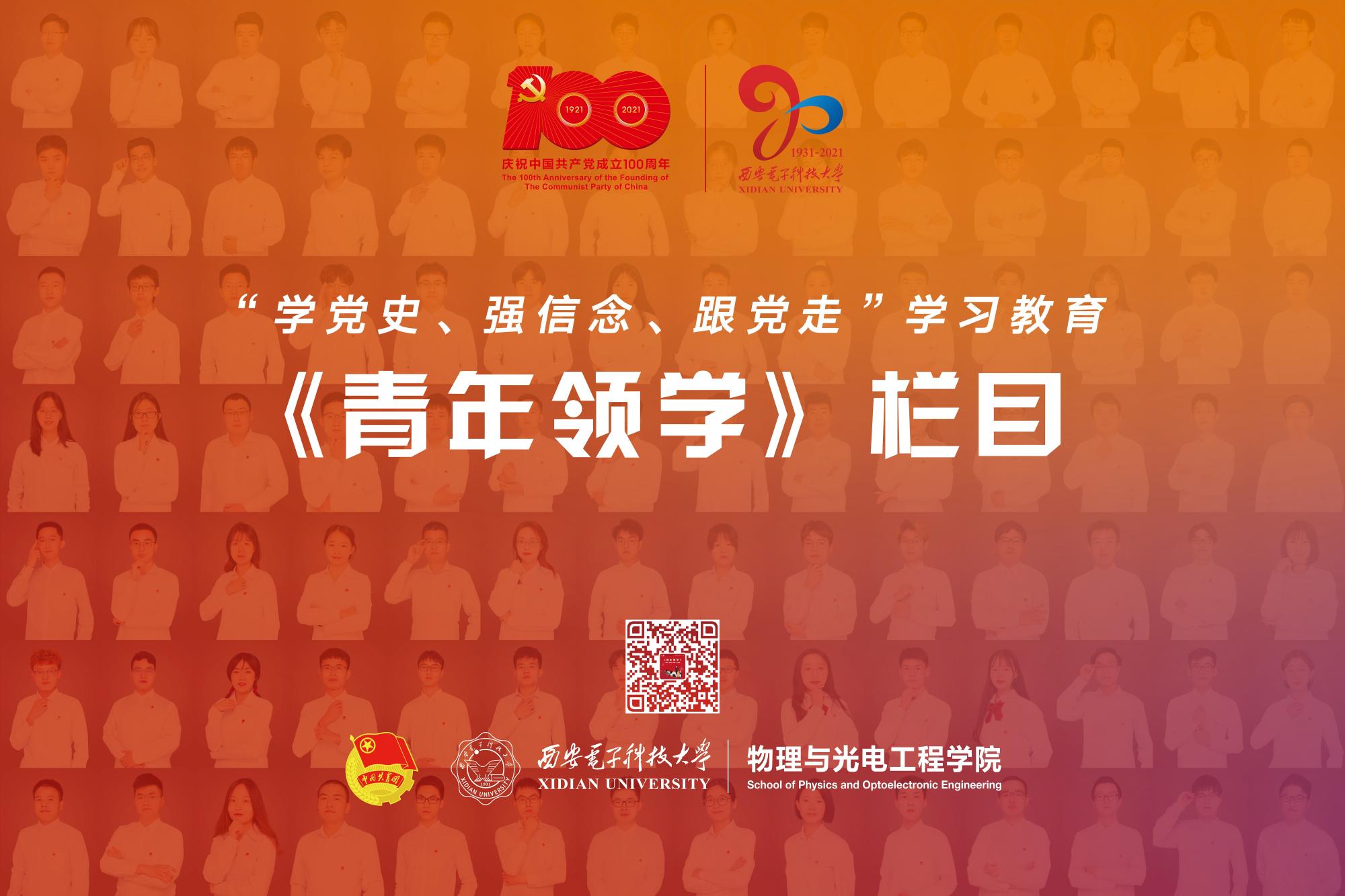 编者按:为庆祝中国共产党成立100周年,深入学习贯彻习近平总书记在党史学习教育动员大会上的重要讲话精神,落实团中央“学党史、强信念、跟党走”学习教育要求,引领广大团员青年厚植爱党、爱国、爱社会主义的情感,物理与光电工程学院紧紧围绕学史明理、学史增信、学史崇德、学史力行,重点突出“英雄”主题,用好英雄事迹和英雄精神这一“教科书”,依托“西电物光院”官方微信和“喜马拉雅FM”电台推出《青年领学》栏目,教...
