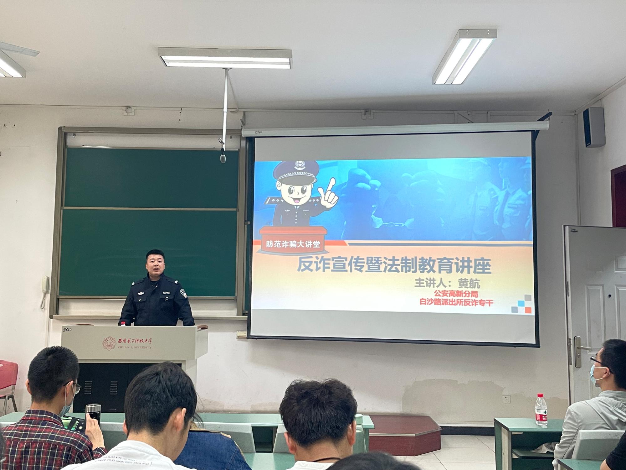 (通讯员:史卓圆)为提高同学们安全防范意识,了解网络诈骗的危害和主要手段,增强对电信网络诈骗的犯罪的识别和应对能力,4月20日,PA捕鱼官方网站邀请公安局高新分局白沙路派出所反诈专干黄航警官在北校区西大楼1区105教室,进行“反诈宣传暨法制教育”为主题的防诈骗知识讲座。在讲座中,黄警官一边向学生发放防范电信诈骗宣传页,一边围绕“什么是电信网络诈骗”、“电信诈骗的受害群体和危害”等问题进行细致讲解。同时,黄警官...