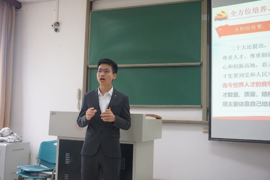 为深入学习贯彻习近平新时代中国特色社会主义思想,贯彻党的二十大精神,2023年4月25日,PA捕鱼官方网站邀请西电“时代之声”研究生宣讲团成员曹远聪、雍嘉伟、何婧荣三位同学在北校区西大楼进行宣讲。何婧荣同学进行了主题为“感受浓浓家国情怀,体悟铮铮西电精神的宣讲”,呼吁大家传承西电给予的特有的地方印记和文化基因,心怀“强国有我”的信念再启航!雍嘉伟同学进行了主题为“弘扬奉献精神,投身国防军工建设”的宣讲,呼吁新...