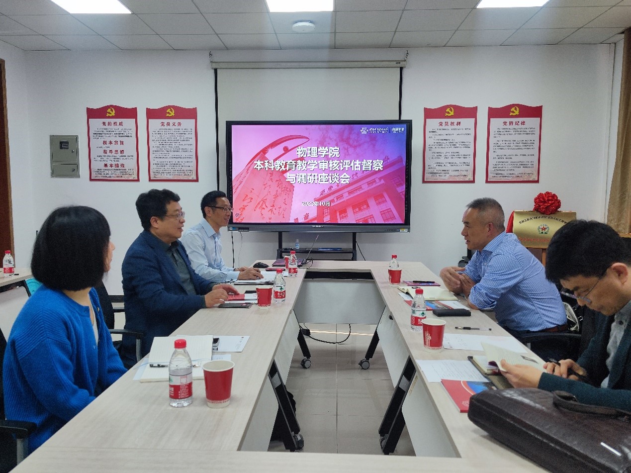 (通讯员:柴亚茹)为扎实推进新一轮本科教育教学审核评估工作,确保各项自评自建工作落实到位,10月26日下午,校党委副书记、纪委书记郭俊带队深入学院开展审核评估专项督查工作,校纪委办公室主任兼党委巡察办公室主任房亮陪同督查,学院院长郭立新、副院长周慧鑫、党委副书记、纪委书记马慧参加了督查工作汇报会议。郭立新从办学历史、师资队伍、人才培养、学科科研及国际交流与合作等方面介绍了学院总体情况。他表示,物理学...
