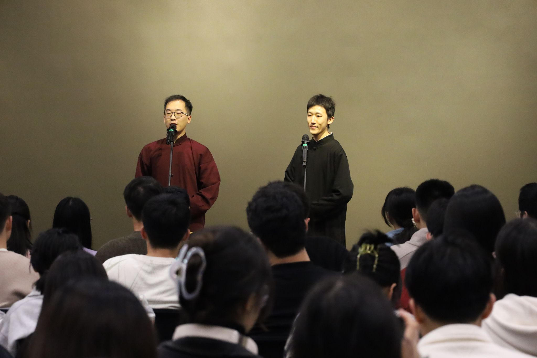 (通讯员 于天玮)把烦恼团成线团,用欢乐重新编织,如约而至的笑声驱散了不期而遇的秋思。10月26日,PA捕鱼官方网站于北校区会议中心104成功举办“物忧物虑”喜剧专场演出。学院特邀PA捕鱼官方网站介四相声社、西安交通大学博雅曲艺社、西安马上喜剧,为北校区师生带来了一个难忘的欢乐夜晚。演出现场起满座满、掌声笑声不断,共吸引250余名研究生师生前来观看。介四相声社、博雅曲艺社带来相声节目《我是歌王》《数来宝》。《我是歌王》...