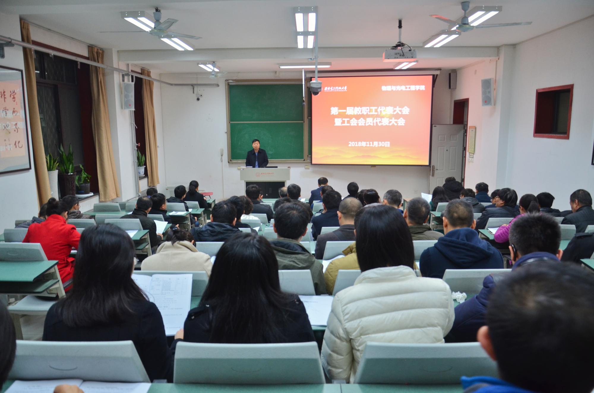 (通讯员:姚娇)12月19日晚,物理与光电工程学院第一届第二次教职工代表大会暨工会会员代表大会在西大楼106教室隆重召开,会议选举产生了学院出席学校第六届教职工代表大会暨工会会员代表大会的代表。副校长高新波、校扶贫办主任沈强、学院领导班子等47位教代会代表参加了会议。大会由学院党委副书记林波主持。学院党委副书记林波主持大会在庄严的国歌声中隆重开幕。林波首先向各位教代会代表传达了此次“双代会”相关文...