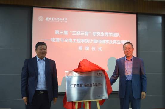 (通讯员王祎心)4月28日,PA捕鱼官方网站计算电磁学及其应用团队(SIS)在北校区西大楼II区412会议室举行“三好三有”研究生导学团队挂牌仪式。党委副书记杨银堂,研究生工作部和物理与光电工程学院领导、团队师生共30余人参加。仪式由物理与光电工程学院执行院长邵晓鹏主持。研究生工作部部长秦荣首先对团队表示祝贺。她说,计算电磁学及其应用团队能够荣获第三届“三好三有”研究生导学团队荣誉称号,离不开团队师生的共...