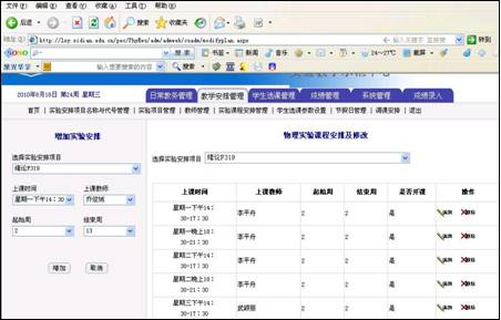 1.“物理实验选课系统”:该系统于2006年上线,在西北地区率先采用“预约式”选课系统,服务于全校本科生“物理实验”(1、2)的实验教学;